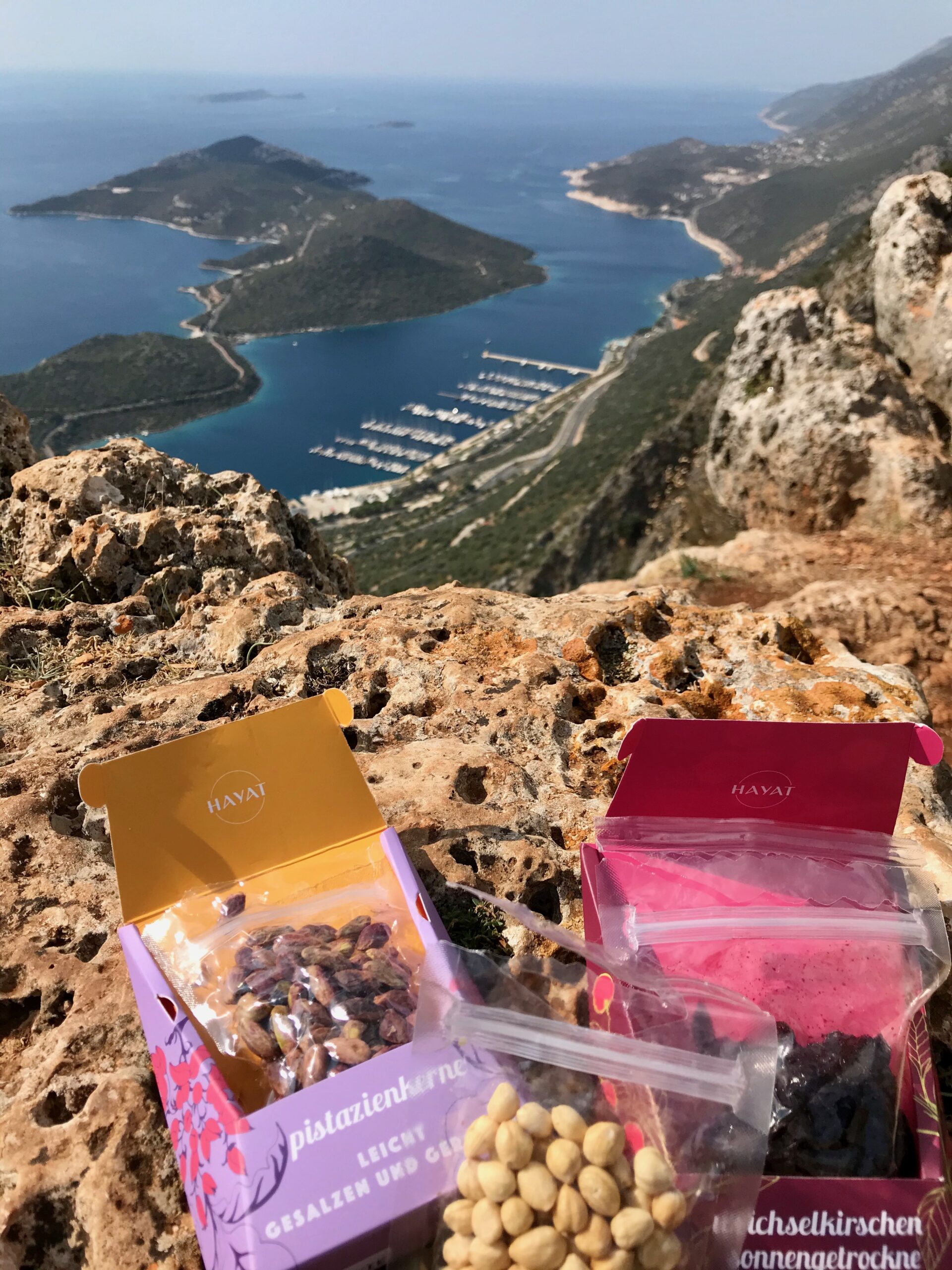 Hayat auf Reisen Immer wieder gehen Hayat Produkte mit auf Reisen unserer Kunden und Freunden – von den Schweizer Alpen bis Kreta, Schottland, Hawaii und den Nordpol, manchmal sogar zurück in die Türkei – schick uns Bilder, falls Du auch welche hast, gerne werden wir sie in unserer Galerie aufnehmen. Blick auf Kaş, TürkeiWanderung auf Lykischem Weg, Kaş, TürkeiBeim Pistazienbauern, TürkeiSoheyl in IranIranIm Schnee, Engadin, SchweizTal in der SchweizSchweizHayat in SchottlandSusanna in SchottlandLilianes garden in 29 Palmes, USAHiking on South West Coast Path, EnglandEveline mit Hayat in GrönlandHayat mit SchlittenhundenMalojaHayat in HawaiMaloja, SchweizKreta