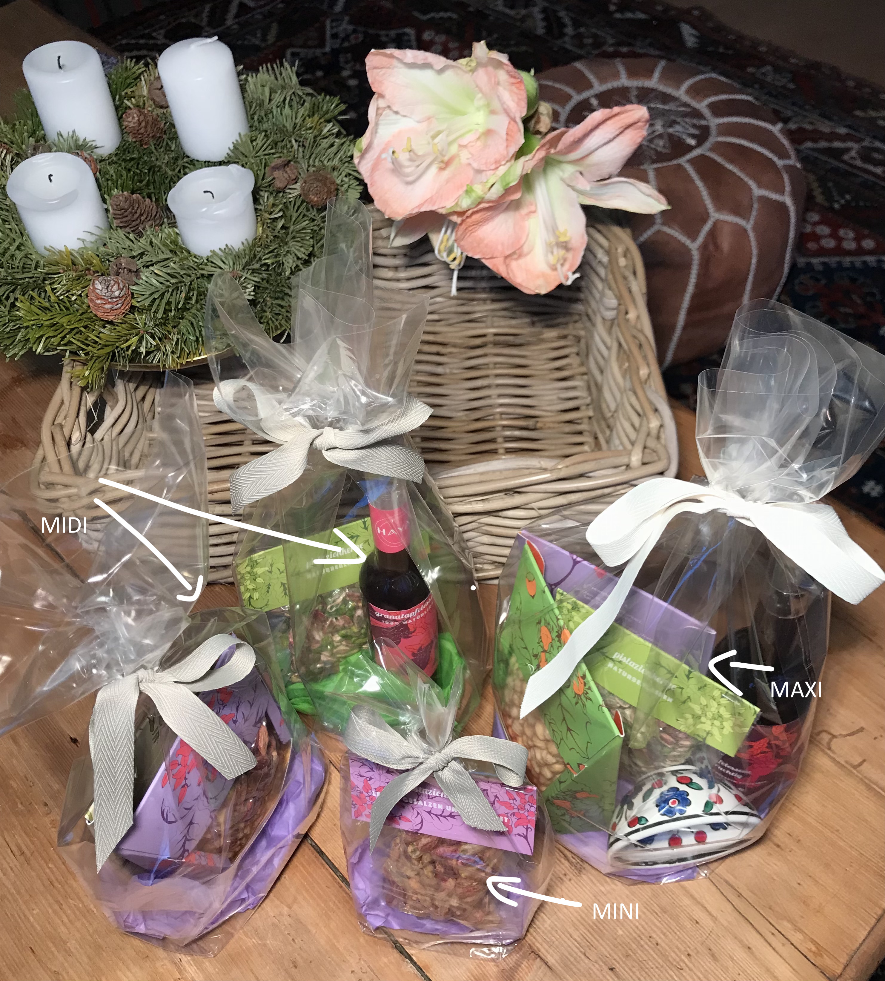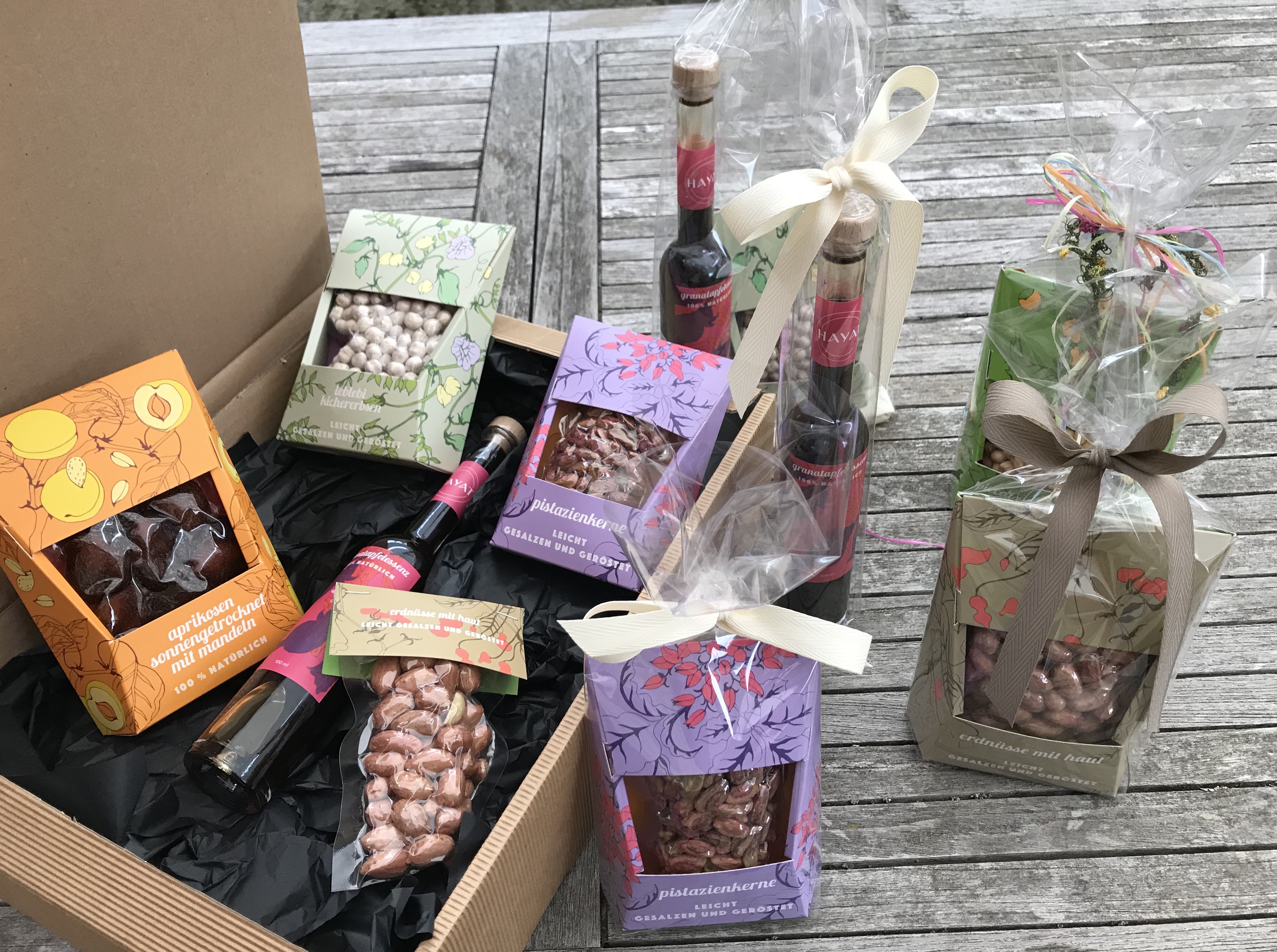 Sie wählen die Produkte und die Verpackungsart aus und wir schicken Ihnen das fertige Geschenk. Wir verpacken sie schlicht mit transparenter Folie und Masche oder in einer hübschen Geschenkbox.