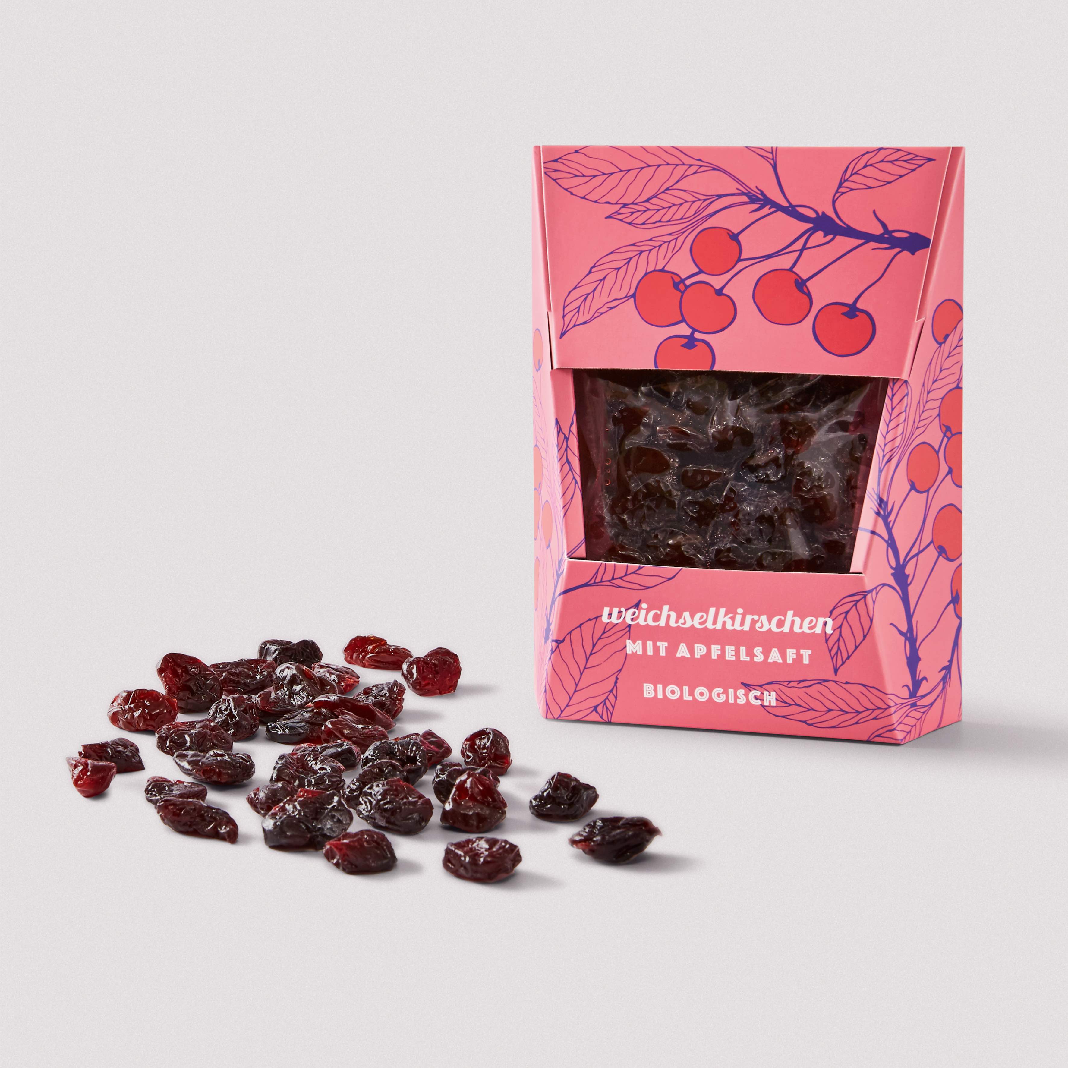 Wir vakuumieren die HAYAT Weichselkirschen in wiederverschliessbaren Säckchen leicht und verpacken sie in edlen, farbig illustrierten Stehkartons. Durch die Vakuumierung bleiben sie länger frisch und behalten ihr unvergleichliches Aroma.